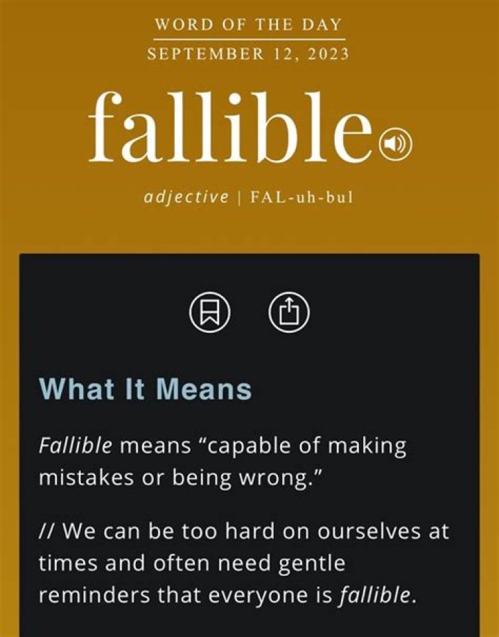 | 99% | FALLIBLE | Capable of making mistakes | Crosswords with Friends |