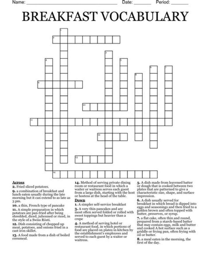 English breakfast for example NYT Crossword Clue Answers are listed below and every time we find a new solution for this clue, we add it on the answers list down below. In cases where two or more answers are displayed, the last one is the most recent.