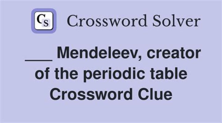 Mendeleev creator of the periodic table NYT Crossword Clue Answers are listed below and every time we find a new solution for this clue, we add it on the answers list down below. In cases where two or more answers are displayed, the last one is the most recent.