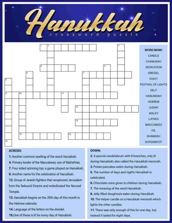 POTATO TREATS FOR HANUKKAH Crossword Solution