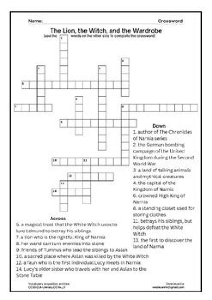 Setting for C S Lewiss The Lion the Witch and the Wardrobe NYT Crossword Clue Answers are listed below and every time we find a new solution for this clue, we add it on the answers list down below. In cases where two or more answers are displayed, the last one is the most recent.