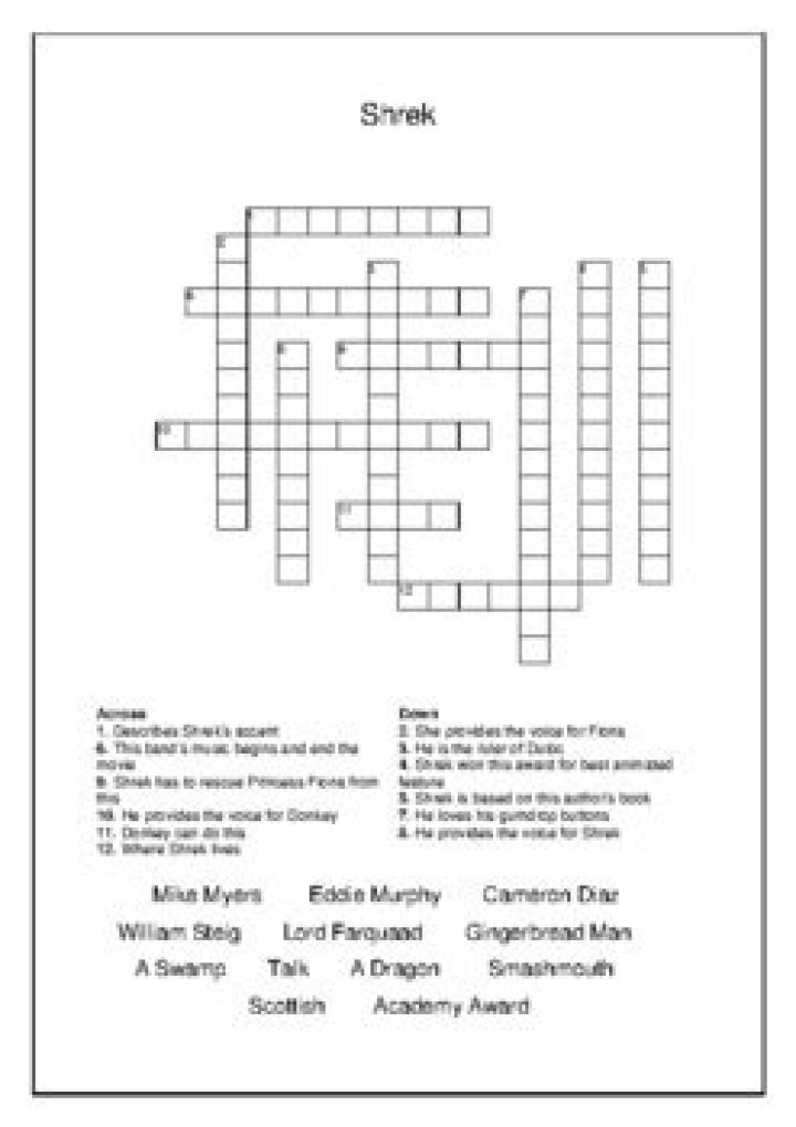 SHREKS COMPANION IN SHREK Crossword Answer