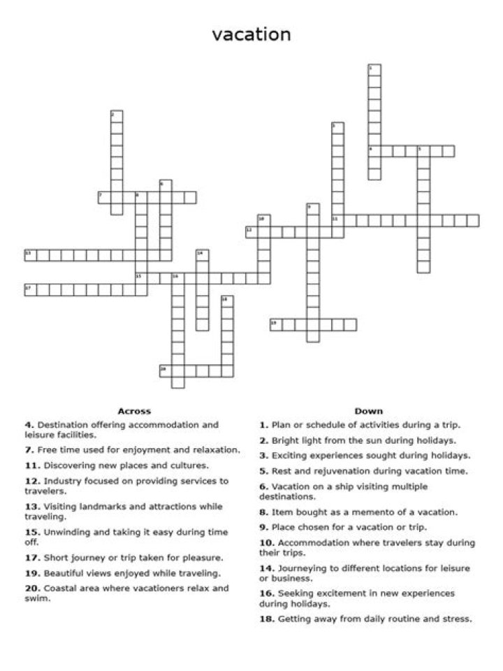 VACATION RELAXATION DESTINATION Crossword Answer