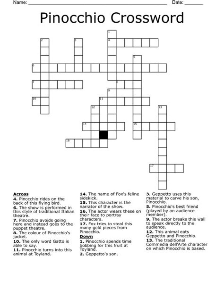 What grows on Pinocchio Crossword Clue