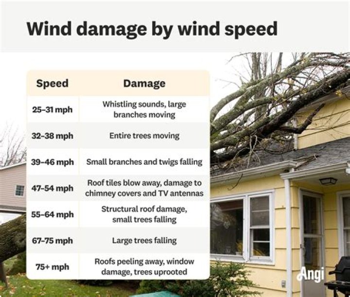 Wind that ranges from 39 to 54 miles per hour